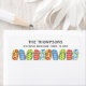 Niedliche Strandflippen. Personalisiert mit Ihrem Namen und Ihrer Adresse. An einem tropischen Strand oder an einem sonnigen Sommertag mit Spaß machen Flip-Flops immer Spaß. Whimsical stylish bunt Flip-Flops in einer Reihe mit Streifen, Blumen und Punkten. Ein lustiges, trendiges und niedliches Geschenk für jeden, der den Sommer, den Strand und das Leben der Flip Flops Lieben. Dieses Design bietet Beach-Flip-Flops personalisierte niedliche, tropische Mailing einfache moderne Familie, individuelles individuelles Aufkleber-Label, Strand-Ozean Küste Strandhaus, schicke niedliche whimsical lustige, coole einzigartige stilvolle, farbenfrohe blaugelbe Orange, minimalistische minimalistische Rücksendeadresse, Kunstwerke von Laura Lacina, stilvolle Küstenleben Meer