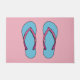 Eine Illustration eines Paares von rosa und blau flip Flops Strand. Es ist Sommerzeit! Lass uns eine Pause machen und unter der Sonne Spaß haben. Bist du nicht aufgeregt, all deine Sachen für den Urlaub vorzubereiten? Vergiss nicht deine Flip Flops.