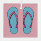 Eine Illustration eines Paares von rosa und blau flip Flops Strand. Es ist Sommerzeit! Lass uns eine Pause machen und unter der Sonne Spaß haben. Bist du nicht aufgeregt, all deine Sachen für den Urlaub vorzubereiten? Vergiss nicht deine Flip Flops.