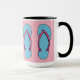 Eine Illustration eines Paares von rosa und blau flip Flops Strand. Es ist Sommerzeit! Lass uns eine Pause machen und unter der Sonne Spaß haben. Bist du nicht aufgeregt, all deine Sachen für den Urlaub vorzubereiten? Vergiss nicht deine Flip Flops.