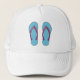 Eine Illustration eines Paares von rosa und blau flip Flops Strand. Es ist Sommerzeit! Lass uns eine Pause machen und unter der Sonne Spaß haben. Bist du nicht aufgeregt, all deine Sachen für den Urlaub vorzubereiten? Vergiss nicht deine Flip Flops.