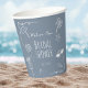 These Beach Hand-Drawn Doodle Illustrations Bridal Shower Paper Cups feature a soft dusty blue background decorated with charming white hand-drawn coastal doodles, including waves, seashells, starfish, sunglasses, sparkles, and playful beachy scribbles. Designed to coordinate beautifully with a coastal or seaside bridal shower theme, these cups add a fun yet elegant touch to your drink station or dessert table. The text and colors are fully editable, allowing you to personalize the design with the bride’s name, event details, or adjust the color palette to perfectly match your celebration.