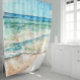 Abstrait Plage Thème Peinture Douche Rideau. Idéal pour la location de cabine, de chalet ou de plage côté océan. Il a une belle côte, de la peinture de bord d'eau en bleu, lacets et crèmes. Conception par JennsEmporium.