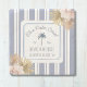 Die Einführung unseres Beach House Blue Stripes Coastal Boho Farmhouse Square Stone Untersetzer. Mit Aquarellbild von orchid- und getrockneten Palmblättern mit marineblau Streifen als Hintergrund. Geeignet für Mieten Urlaub Strand Haus oder Küstenlinie Hütte.