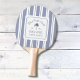 Das Blue Stripes Coastal Bauernhaus Ping Pong Paddle präsentiert unser Beach House. Mit Aquarellbild von orchid- und getrockneten Palmblättern mit marineblau Streifen als Hintergrund. Geeignet für Mieten Urlaub Strand Haus oder Küstenlinie Hütte.