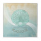 Diese Keramik Kachel-Design in den sanften Farben von Meer und Sand ermöglicht es Ihnen, einfach Ihren eigenen Namen und Text mit der bereitgestellten Vorlage hinzuzufügen. Das schlichte Bild der Muschel auf einem bedrückten, wasserfarbenen Hintergrund wird durch einen Wellenakzent in Aqua und Weiß hervorgehoben. Durchsuchen Sie ID623, um zu sehen, wie die Elemente am Meer und weitere Produkte mit diesem Design koordiniert werden.