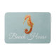 Treten Sie ein in Ihr Bad und entspannen Sie mit unserem Beach House Bath Mat. Genießen Sie unsere Aquarell Seepferd Malerei auf der glasfarbenen Badematte.