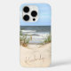 Tropisches Beachthandy-Gehäuse mit einem Foto direkt am Meer mit Sanddünen und Meeresrasen, mit Wellen im Hintergrund und individuell einstellbaren Namen oder Text Ihrer Wahl.