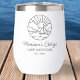 Un tourbillon café/vin amusant qui est parfait pour votre plage, chalet ou maison de lac près de l'eau. Design présente un voilier sur l'eau dans un badge de style logo. Ajoutez votre texte personnalisé en bas - nom, emplacement, date, monogramme, etc. Fait le cadeau parfait pour toute personne qui aime vivre ou être près de l'eau - idéal pour les réunions de famille aussi.