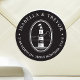 Minimal schwarze Rücksendeadresse Aufkleber, die auf eine Hochzeit im nautischen Stil zugeschnitten sind. Sie sind mit einer einzigartigen Darstellung des Leuchtturms im nautischen Stil, umgeben von Ihren Informationen, ausgestattet.