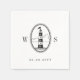 Hochzeitsnapkins zum Thema Nautic Leuchtturm für Ihre Hochzeitsgäste an einem besonderen Tag. Es zeigt eine Vintage Abbildung eines Leuchtturms mit den mit Monogramm Initialen Ihrer Braut und des Bräutigams auf beiden Seiten. Ein edles und einzigartiges Nass an Hochzeitsgeschirr.