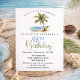 Celebrate a remarkable milestone with a beautiful tropical beach themed 98th birthday invitation that captures the relaxing spirit of the ocean. This elegant coastal design features a serene seaside scene with a graceful palm tree overlooking gentle waves, creating the perfect atmosphere for a warm and memorable birthday gathering by the shore. Soft beach inspired colors and timeless typography give this invitation a sophisticated yet relaxed island feel that is ideal for honoring a loved one’s extraordinary 98th birthday.