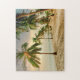 Puzzle mit Palmen im Sand am Strand bei Sonnenuntergang. Zeichnen Sie es, wenn Sie fertig sind, oder packen Sie es auf, um wieder zu arbeiten. Wählen Sie aus den verschiedenen verfügbaren Größen, um eine größere oder kleinere Größe oder mehrere Stücke auszuwählen.