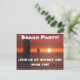 Beach Party! Begleiten Sie uns bei Sonnenuntergang und geniessen Sie die ganze Nacht! Eine tolle Einladung für ein warmes Party am Strand. Cocktails, Sonnenuntergang, glückliche Leute.
