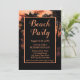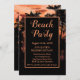 Dieses individuelle Beachhouse-Party bietet einen orangefarbenen Sonnenuntergang mit Palmen auf beiden Seiten, mit Einzelheiten zum Party wie Party, Datum, Lage, UAWG und weitere Infos. Verfügbar für Druck und sofortigen Download.