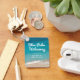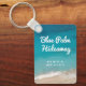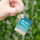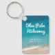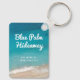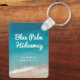 Erstellen Sie einen personalisierten, maßgeschneiderten Schlüsselanhänger für Ihre Strandurlaubsvermietung mit einem türkisfarbenen aquamarinen Sandstrand in blauen Ozeanen und einer modernen Retro-Typografie, die Sie bei Karos in Ihrem Ferienhaus, Condo, Zimmer, Apartment oder als Gästebuchplatz nutzen können.