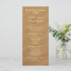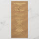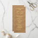 Grand, plage et programme de mariage. Customiser sur les deux côtés du papier long avec du texte jaune clair sur une image de sable brun. Inclure le lieu du mariage, les noms de la fête de mariage et une note de remerciement aux invités.