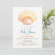 Nautical Summer Beach Seashell Baby Dusche Einladung. Die Muscheln sind blau, orange und pfirsichfarben.