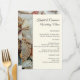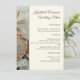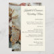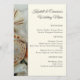 Modèle du menu mariage Seashells. Créé pour une réception simple avec deux modèles de texte qui s'alignent à droite. Ajoutez un titre qui inclut les noms du couple. Tous les produits du menu sont listés dans un paragraphe en utilisant des espaces pour séparer les entrées, les entrées et les desserts, ou votre choix. Font est un script et des polices imprimées en gris foncé. L'image complète des coquillages de plage est à l'arrière du papier. La conception fonctionnera sur certaines autres tailles. Aucun texte ne doit être proche du bord du papier.