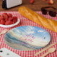 Maßgeschneiderte Party Papier Teller mit Text in der Mitte und Strand Szene Bild. Ein Sonnenaufgang des Ozeans mit Wellen am Ufer und fliegenden Vögeln ist das Bild auf runden oder quadratischen Tellern. Helle fuchsia rosa Text in der Mitte kann für eine Geburtstagsparty, Glückwunsch, Abschluss oder jede Veranstaltung angepasst werden. Es wird ein moderner Schriftart mit extra großen Anfangsbuchstaben verwendet. Persönlich mit dem Namen der Ehre.