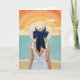 Dieses Geschirr zeigt ein Portrait einer Frau, die einen übergroßen Sonnenhut trägt und den Sonnenuntergang über dem Strand betrachtet.