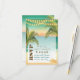 Palmen und Saitenlichter umrahmen den Sonnenuntergang und das sandige Ufer dieser schönen RSVP-Karte für die Hochzeit am Strand. Passen Sie den modernen, stilvollen Text auf der Vorderseite mit Ihren Hochzeitsinformationen an.