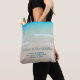 Tote Tasche für eine Hochzeit am Strand willkommen zu den Gästen. Eine Strandlandschaft mit tropisch blauem Meerwasser und hellbraunem Sand bedeckt diese hochwertige Tote-Tasche. Anpassen mit Text in der unteren, nur auf einer Seite. Geben Sie Namen, Ort der Hochzeit und Datum ein. Es ist ein nettes, nützliches Geschenk für die Mitglieder der Hochzeitsfeier.