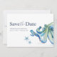 Ce mariage sur la plage, à l'exception de la carte de date, présente une pieuvre bleu aquarelle avec étoiles de mer. Utilisez les champs modèle pour ajouter vos informations personnalisées. commandez des cartes imprimées ou téléchargez un fichier électronique pour l'e-mail ou comme une invitation à la date imprimable. Un choix côtier et nautique pour des mariages uniques sur le thème de la plage. L'aquarelle et le design uniques de Victoria Grigaliunas