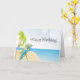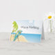 Ein schöner Geburtstagsgruß am Strand. Ozean, Regenschirm, warmer Sand, blauer Himmel und eine Palme. Grüße sind perfekt für Ruhestand und Jubiläum auch! Text kann geändert werden.