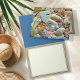 Des coquillages colorés de plage tropicale notent les cartes sans texte. Les notes pliées ont une jolie photo de coquillages de Floride sur le devant en couleurs rose, marron, bronze, bleu et blanc. Cette photo a été prise de ma collection personnelle. Les coquilles comprennent une coquille d'olivier, des coquilles Saint-Jacques de Calico, un oursin, un cadran solaire et un morceau de dollar de sable. Couleurs bleues et beiges solides à l'intérieur pour écrire à la main une note personnelle. Choisissez parmi trois tailles, la plus grande étant parfaite pour la signature de "nous tous" pour une occasion spéciale.