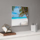 10,75" x 10,75" Acrylwanduhr mit Bild eines unberührten Strandes, einer Palme und eines unglaublich blauen Himmels. Sehen Sie sich die gesamte Sammlung der Shipwreck-Uhr im DÉCOR an. | Uhrenabschnitt.