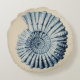 Beachy Art-Spirale Seashell im Blau über einem Taupe/beige einer Hintergrundfarbe. Entwurf ist der selbe auf der Rückseite des runden Kissens.