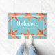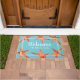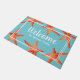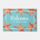 Beachy Fußmatte, die rote orange mutige Starfish, weißen Skript"Willkommens" Text, einen weißen doppelten Rahmen und den Ihren Familiennamen im weißen Skript kennzeichnet!