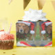 Beagle in der Weihnachtsmannmütze u. in der Geschenkpapier