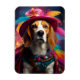 Ein spielerischer Beagle in einem pulsierenden, skurrilen Kostüm gekleidet vor einem glänzenden, magischen Hintergrund. Dieses bezaubernde Design ist perfekt für Tierfreunde.