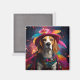 Ein spielerischer Beagle in einem pulsierenden, skurrilen Kostüm gekleidet vor einem glänzenden, magischen Hintergrund. Dieses bezaubernde Design ist perfekt für Tierfreunde.