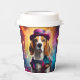 Ein spielerischer Beagle in einem pulsierenden, skurrilen Kostüm gekleidet vor einem glänzenden, magischen Hintergrund. Dieses bezaubernde Design ist perfekt für Tierfreunde.