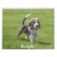 Ein Kalender mit 12 verschiedenen Bildern von Beagle Hunden