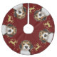 Beagle mit Gold Glitzer Hirsche Weihnachten | Rot Polyester Weihnachtsbaumdecke