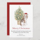 Diese bezaubernde Weihnachtskarte zum Thema Beagle zeigt einen Beagle mit einer Weihnachtsmannmütze, der vor einem beleuchteten Weihnachtsbaum sitzt. Der Gruß auf der Karte lautet "Frohe Weihnachten" "Möge alles, was schön ist und Ihnen Freude bringt, sein diese Feriensaison und das ganze Jahr lang" und kann personalisiert sein.