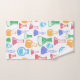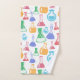 Handtuch Set mit einem lustigen und bunten Muster. Wissenschaftler schauen mit Beakern und Flaschen verschiedener Formen und Größen in hellen, fröhlichen Farben.