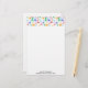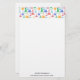 Stationery mit einem lustigen und farbenfrohen Muster. Wissenschaftler schauen mit Beakern und Flaschen verschiedener Formen und Größen in hellen, fröhlichen Farben.