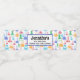 Event Wasserflaschen Etiketten mit einem lustigen und farbenfrohen Muster. Wissenschaftler schauen mit Beakern und Flaschen verschiedener Formen und Größen in hellen, fröhlichen Farben.
