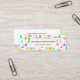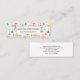 Mini Visitenkarten mit einem lustigen und farbenfrohen Muster. Wissenschaftler schauen mit Beakern und Flaschen verschiedener Formen und Größen in hellen, fröhlichen Farben.