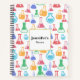 Spiral Notizbuch mit einem lustigen und farbenfrohen Muster. Wissenschaftler schauen mit Beakern und Flaschen verschiedener Formen und Größen in hellen, fröhlichen Farben.