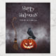 Im Design findet man einen beängstigenden bösen Kürbis , einen schwarzen Raben und Hexen auf einem dunklen Grunge mit Texturierung "Happy Halloween" in Halloween thematischer Typografie . Einfach mit eigenem Text personalisieren. Ideal für Halloween-Partys oder Liebhaber.