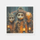 Halloween Papierservietten mit gruseligen, seltsamen Kindern. Man sieht aus wie eine Porzellanpuppe mit Rissen, Narben und beängstigenden Augen, es gibt ein Skelettbast und einen seltsamen Jungen, der auch wie eine gruselige Porzellanpuppe aussieht, mit Stacheln, Narben und erschreckenden Augen. Sind sie in Kostümen oder Wesen aus einem dunklen bösen Schloss? #generative Inhalte