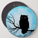 Beängstigende Vintage Eule mit Silberblauer Wasser Button