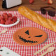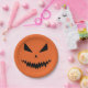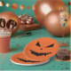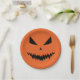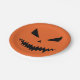 Halloween-Party-Tabelle liefert Teller aus Papier. Beängstigender Halloween Jack OLantern schwarz Gesichtsorange. Sie können die dunkelorangefarbene Farbe anpassen.
