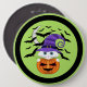 Beängstigender Kürbis mit einem weißen Kätzchen un Button